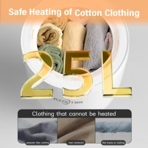 Spacious 25L Capacity & Portable Design: Heated towel warmer holds 2 large bath towels (40"x70"), or even a plush robe/blanket! Lightweight at only 9.9 lbs with a compact 12.4" base diameter, easily move it anywhere you need warmth.