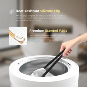 Stylish & Versatile: Towel warmer Bucket features a sleek, modern white design that complements any bathroom, bedroom, or spa decor. The perfect plug-and-play luxury – no installation needed!